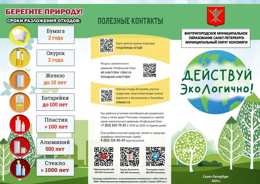В связи с этим, муниципальным образованием Коломяги организована акция "Моя планета - Земля!". В рамках Акции жители МО Коломяги могут получить экосумки из 100% хлопка. Данная акция направлена на уменьшение использования полиэтилена в повседневной жизни и более ответственного отношения к природе. Экосумки можно получить по адресу: Земский пер. д. 7, 2 эт. каб №6, вт. и чт. с 11:00 до 13:00 и с 14:00 до 17:00 (приём ведётся по предварительной записи по тел. 4546870)