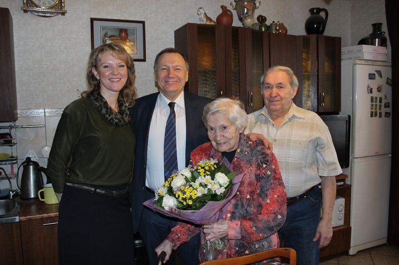 «Это рубеж, который дается немногим, — говорит Александр Алексеевич. — Человек, проживший столько лет, безусловно, пользуется уважением окружающих. Это очень почетно. Надеемся, что будем ежегодно приезжать к Вам с поздравлениями».