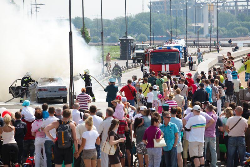 Фестиваль был разбит на зоны, где зрители смогли рассредоточиться по парку, посещая по очереди каждую площадку. На интерактивной площадке «Дымовая комната» юные посетители под завесой искусственного дыма научились ориентироваться в пространстве в условиях нулевой видимости. А посетив интерактивную экспозицию спецтехники, специального обмундирования и оборудования для пожаротушения, можно было посидеть за рулём настоящей рабочей пожарной машины и даже подняться на высоту в специальной люльке.