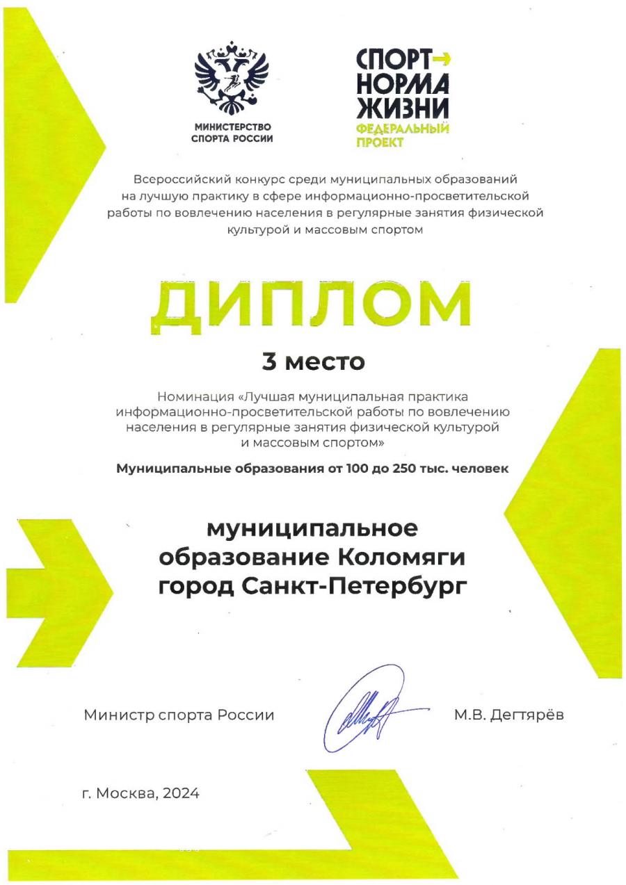 03 декабря в Министерстве спорта Российской Федерации состоялось награждение по итогам Всероссийского конкурса на лучшую муниципальную практику информационно-просветительской работы по вовлечению населения в регулярные занятия физической культурой и спортом.