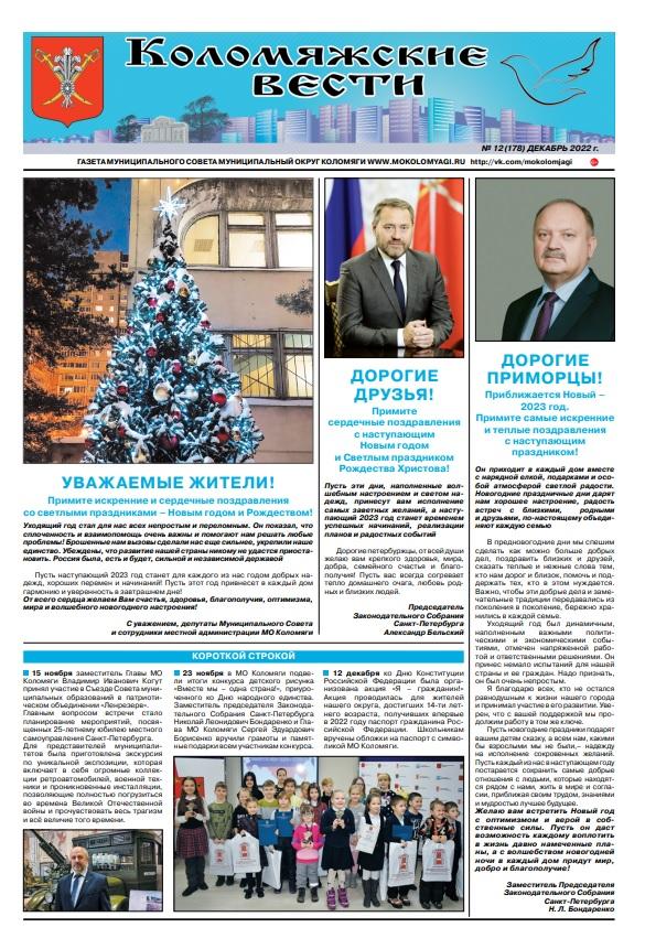 Новогодний номер газеты "Коломяжские вести" - декабрь 2022