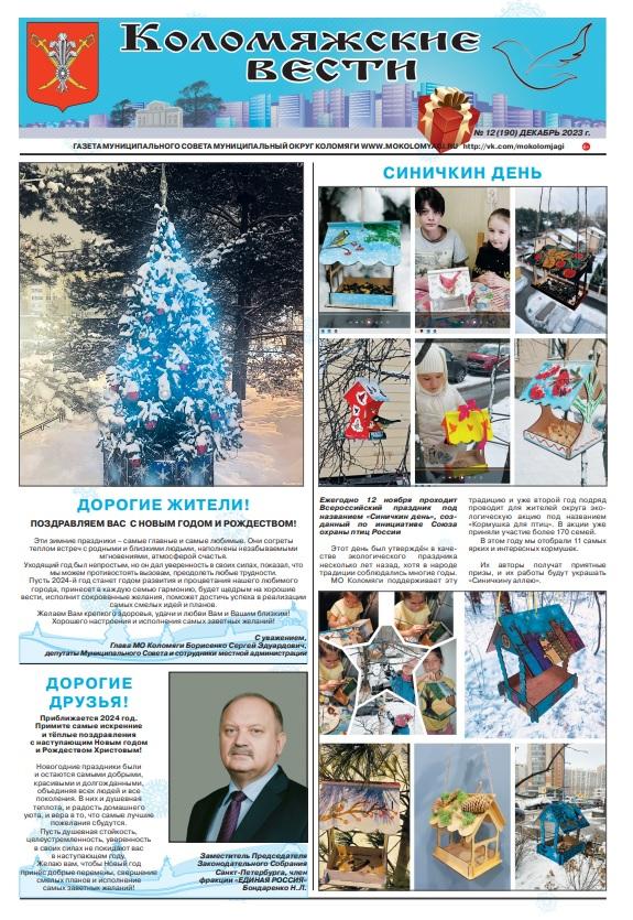 Новогодний номер газеты "Коломяжские вести" - декабрь, 2023