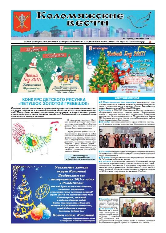 Уважаемые читатели, новогодний номер газеты, декабрь 2016, вы можете посмотреть на нашем сайте - mokolomyagi.ru/files/file/kolom_12_16_out.pdf