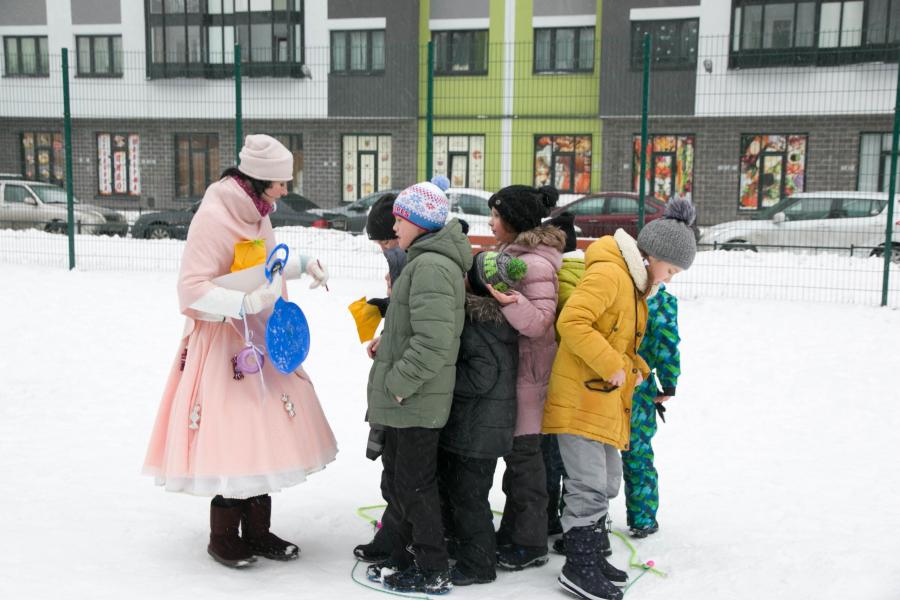 Детей разбили на 6 команд и отправили на 6 разных станций для прохождения испытаний. Среди испытаний были: попасть снежком в злого снеговика, спеть новогоднюю песню, рассказать стих про зиму, посоревноваться с волком в ловкости и скорости, найти сладости в заколдованном поле и украсить живую новогоднюю елку с помощью прищепок. После прохождения каждой станции, команда получала букву и должна была составить новогоднее слово - фейерверк. В заключении праздника был торжественный салют.