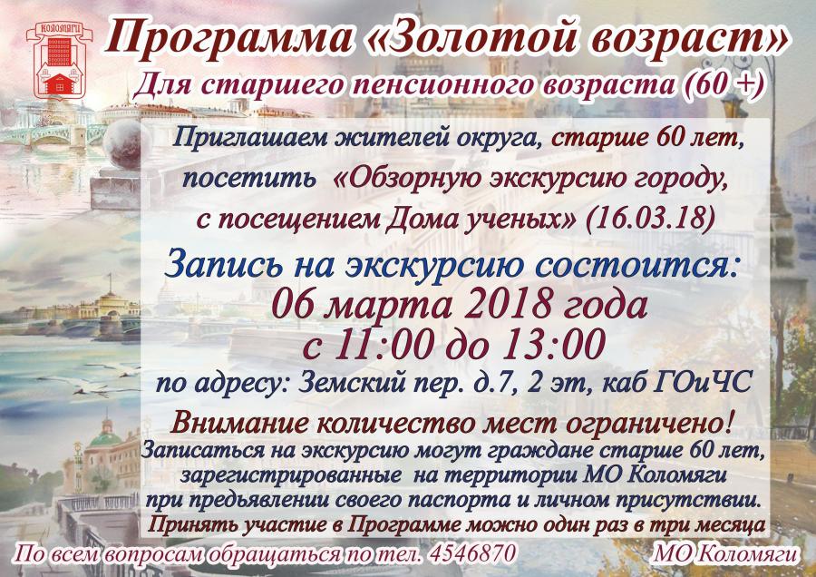 Экскурсия для жителей старше 60 лет.