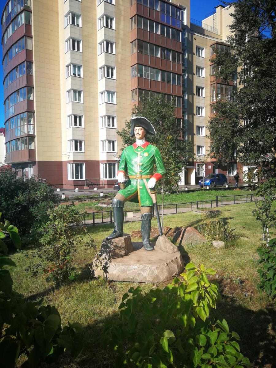 19 сентября возле дома 11 по Новоколомяжскому проспекту появилась малая архитектурная форма в виде основателя нашего города. Петр I установлен здесь не случайно – активные жители подали заявку в муниципалитет с просьбой установить скульптуру перед их домом. Место установки и образ фигуры выбирали коллективно. После просмотра каталога, активисты сказали: «Хотим Императора!»