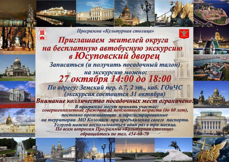 Приглашаем жителей округа на бесплатную экскурсию в Юсуповский дворец