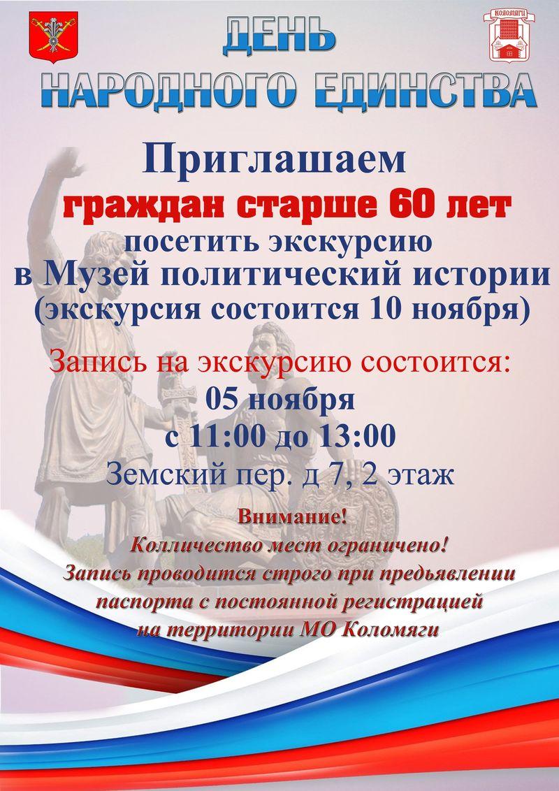 Приглашаем граждан старше 60 лет в Музей политической истории. Запись на экскурсию состоится - 5 ноября 2015 года.