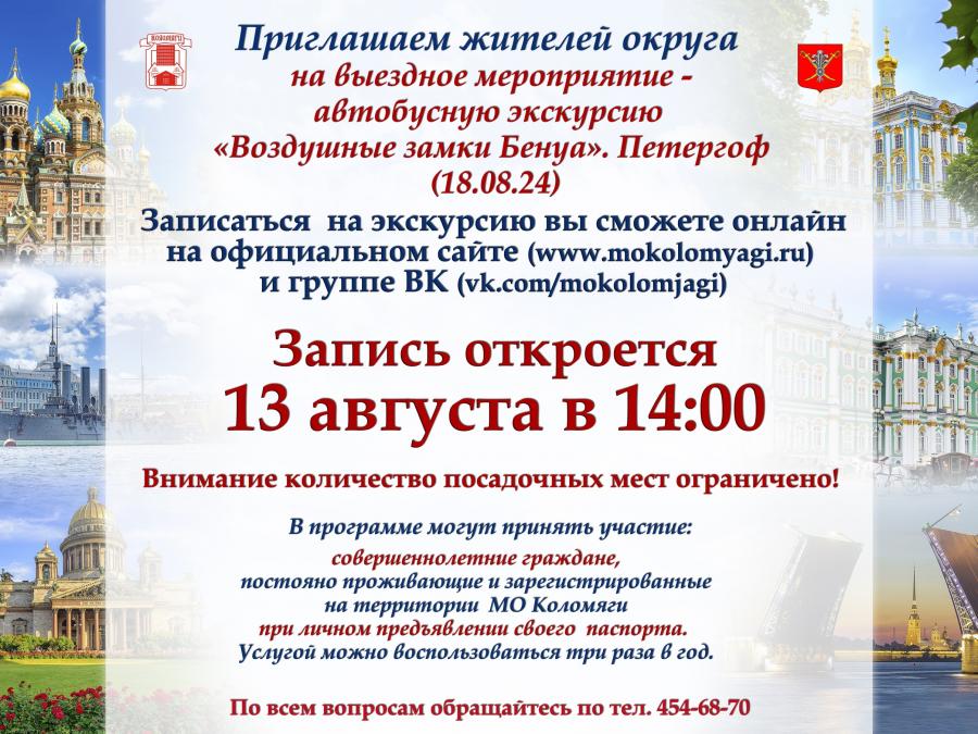 - Экскурсия для совершеннолетних граждан от 18 лет, постоянно зарегистрированных на территории МО Коломяги