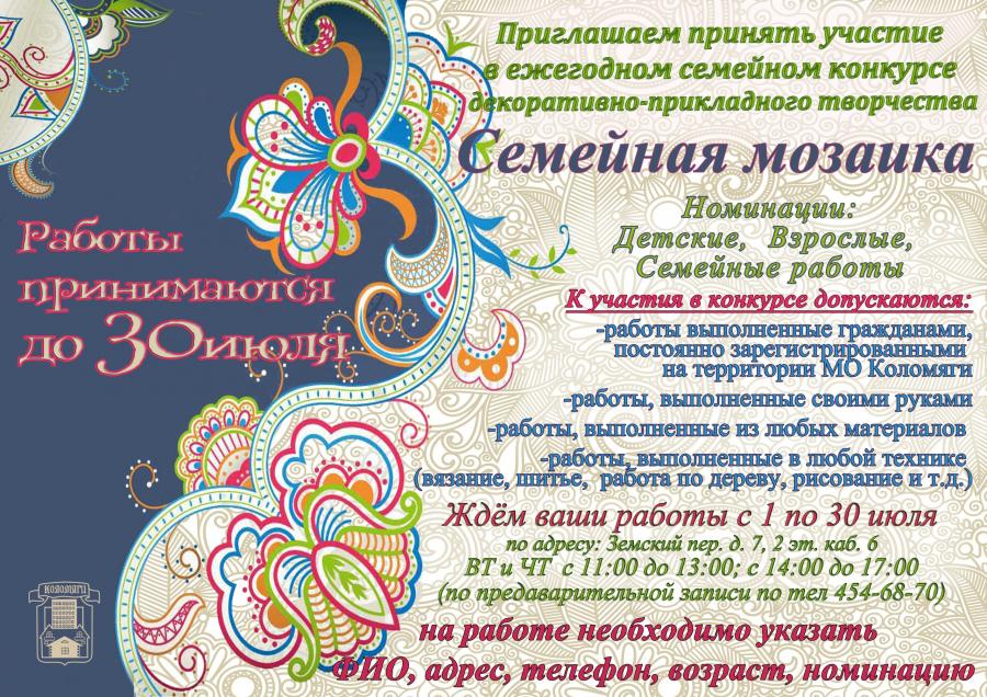 Приглашаем принять участие в конкурсе декоративно-прикладного творчества "Семейная мозаика"