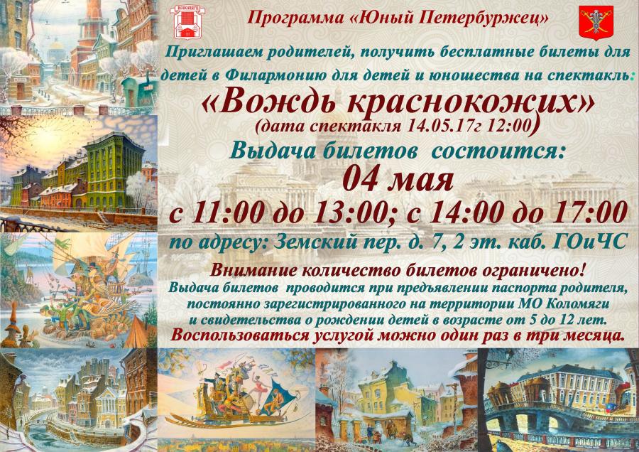 Приглашаем родителей получить билеты на спектакль "Вождь краснокожих"