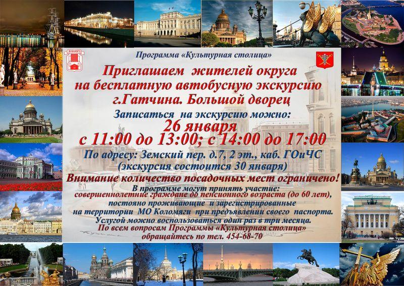 Приглашаем жителей на бесплатную экскурсию в Гатчину