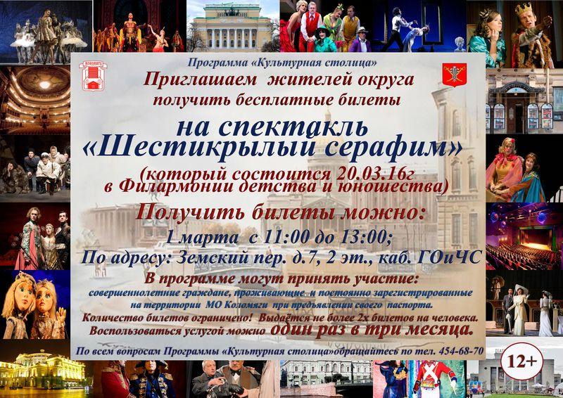 Приглашаем жителей на спектакль "Шестикрылый Серафим"