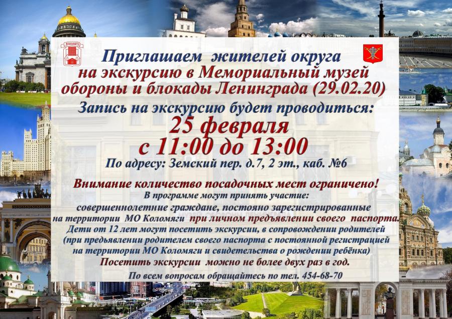 Приглашаем жителей округа на экскурсию в Мемориальный музей обороны и блокады Ленинграда