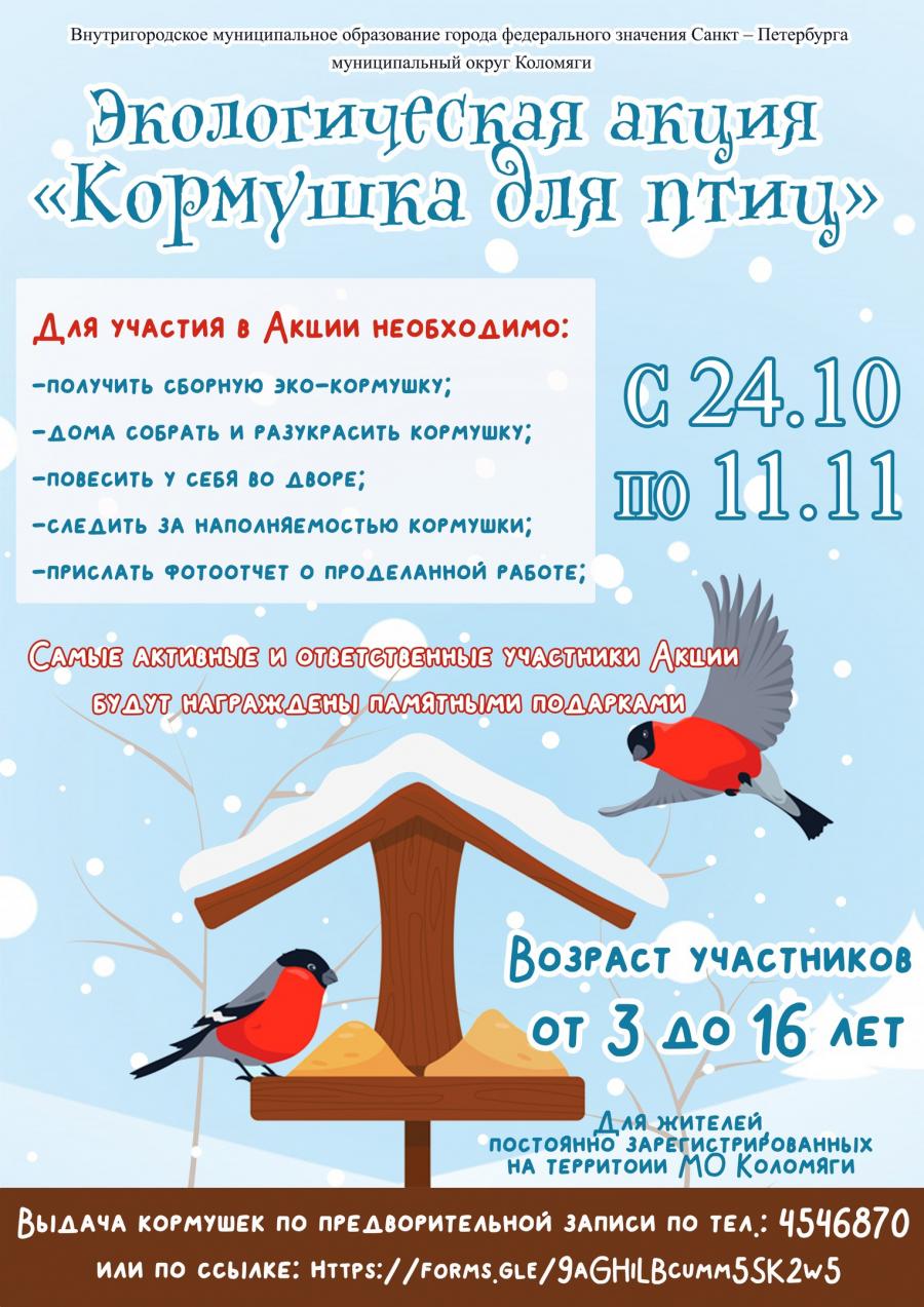 Кормушка выдаётся только после телефонного подтверждения сотрудником МО Коломяги в течении 7 рабочих дней по указанному Вами номеру и назначения времени приёма .