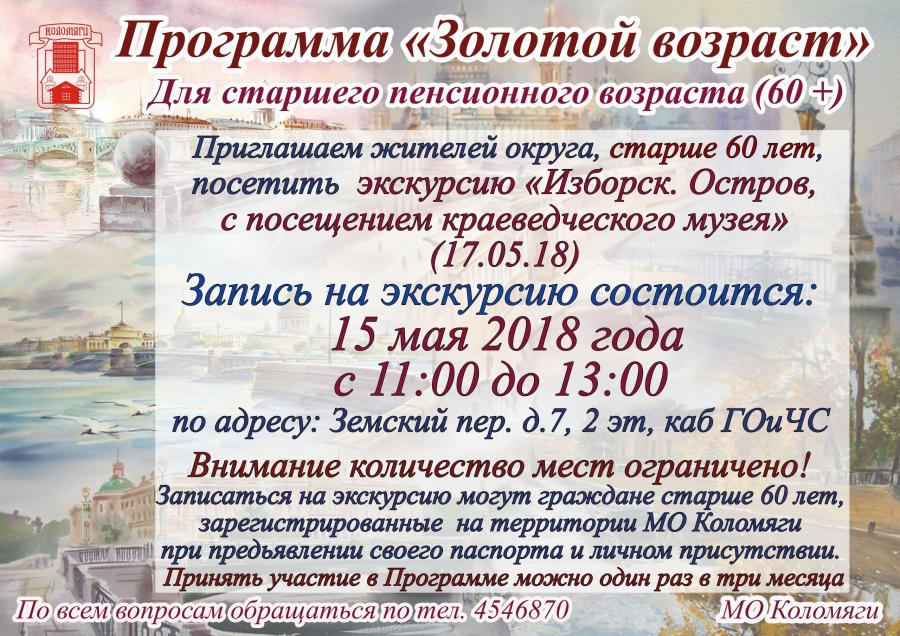Экскурсия по программе "Золотой возраст", для жителей старше 60 лет.