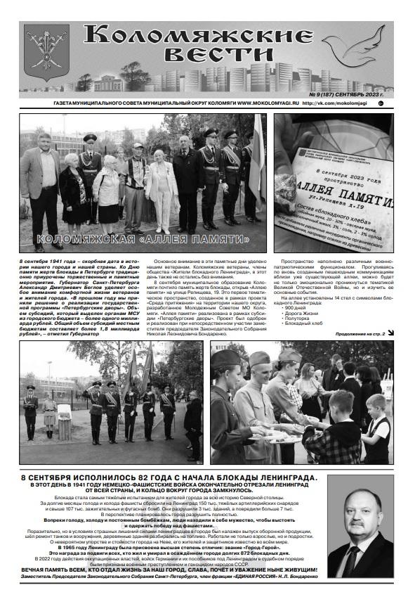 Свежий номер газеты "Коломяжские вести" - сентябрь, 2023