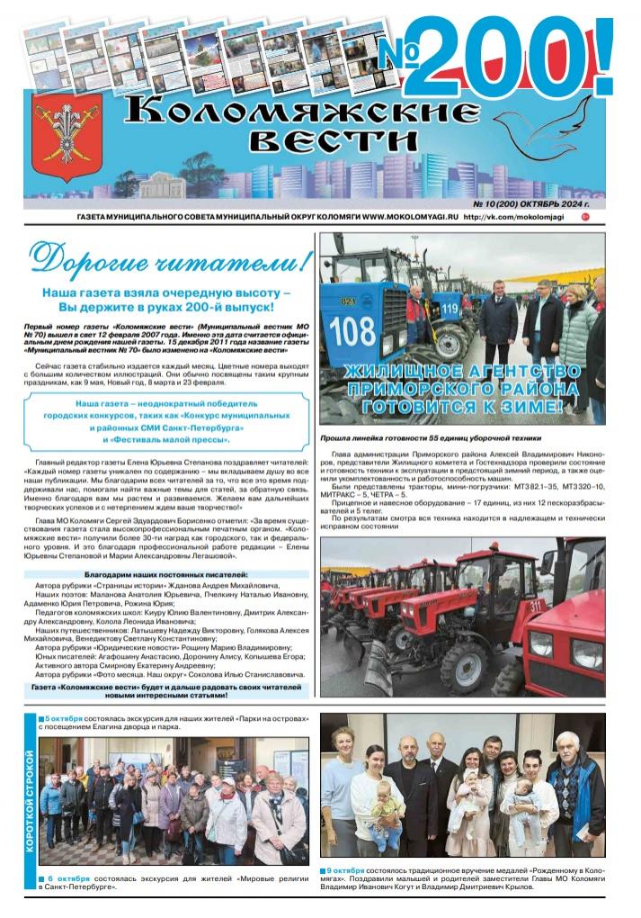 Свежий номер газеты "Коломяжские вести" - 200-й номер