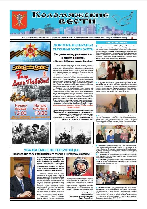 Уважаемые жители, апрельский номер газеты "Коломяжские вести" вы можете почитать на нашем сайте - mokolomyagi.ru/files/file/kolom_04_16.pdf