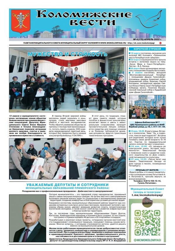 Свежий номер газеты "Коломяжские вести", апрель, 2022 -