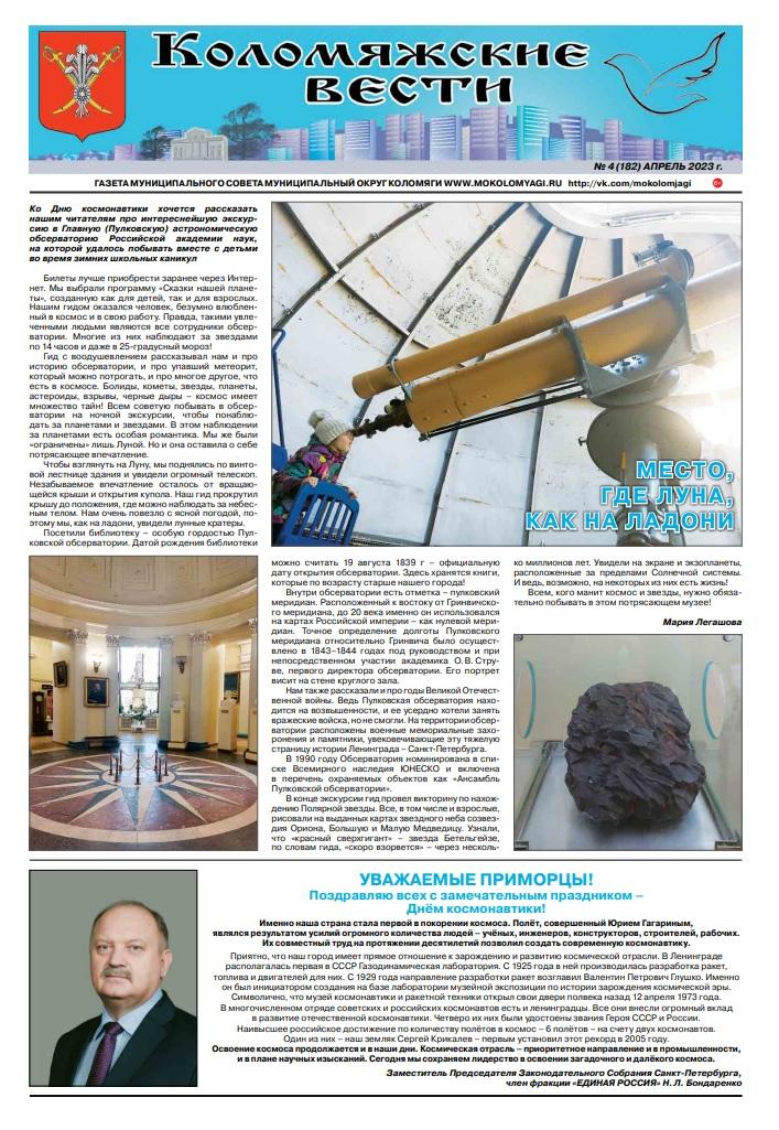 Свежий номер газеты "Коломяжские вести" - апрель, 2023