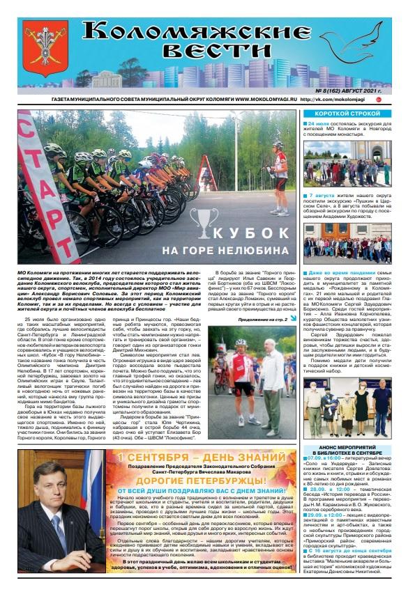 Свежий номер газеты "Коломяжские вести" - август, 2021