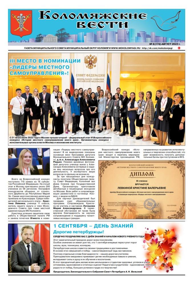 Свежий номер газеты "Коломяжские вести" - август, 2022