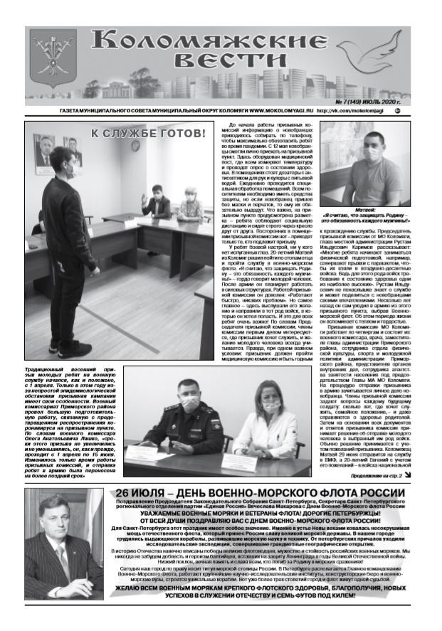 Свежий номер газеты "Коломяжские вести" - июль, 2020