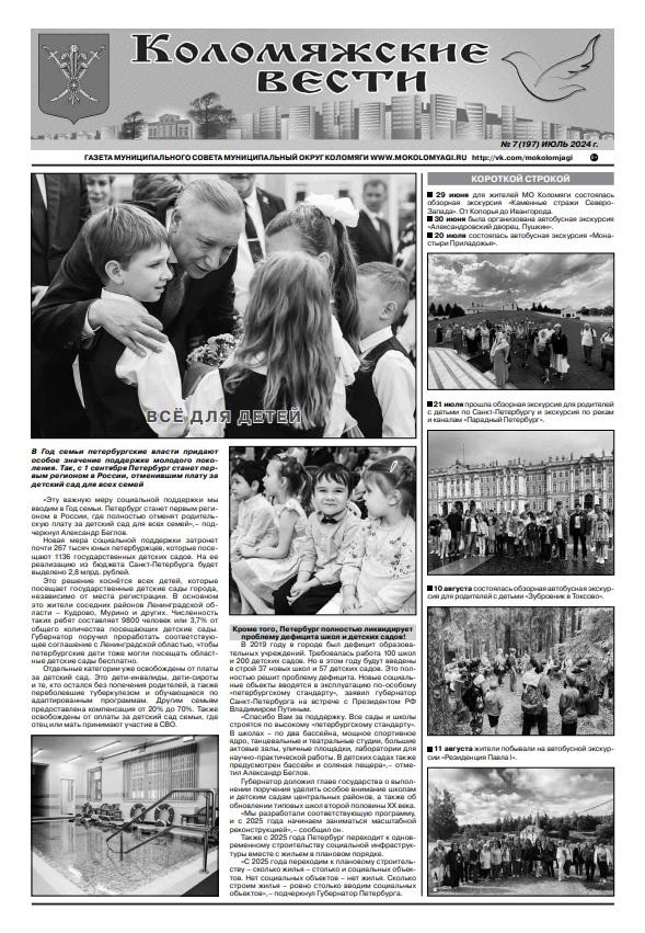 Свежий номер газеты "Коломяжские вести" - июль, 2024