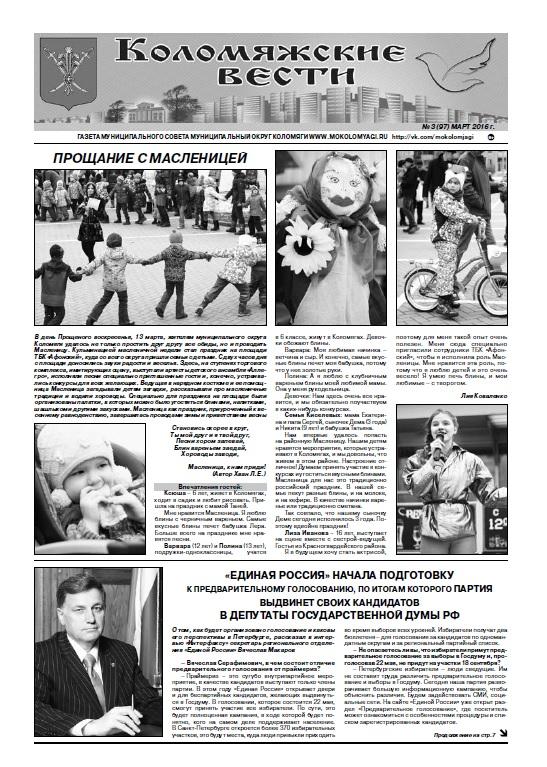 Уважаемые читатели, мартовский номер газеты "Коломяжские вести", №3(97), 2016 год - на нашем сайте: mokolomyagi.ru/files/file/kolom_03_16.pdf