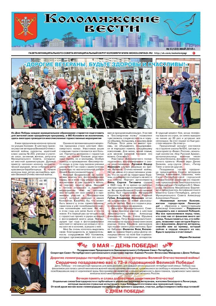 Уважаемые читатели, на сайте - свежий номер газета "Коломяжские вести" http://mokolomyagi.ru/files/file/kolom_05_18.pdf