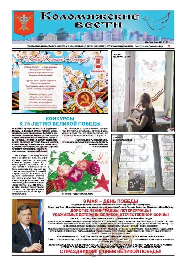 Свежий номер газеты "Коломяжские вести" - май, 2020
