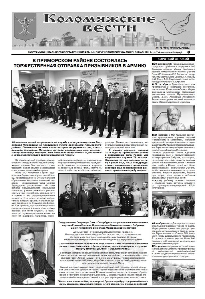 Свежий номер газеты "Коломяжские вести" - ноябрь, 2018