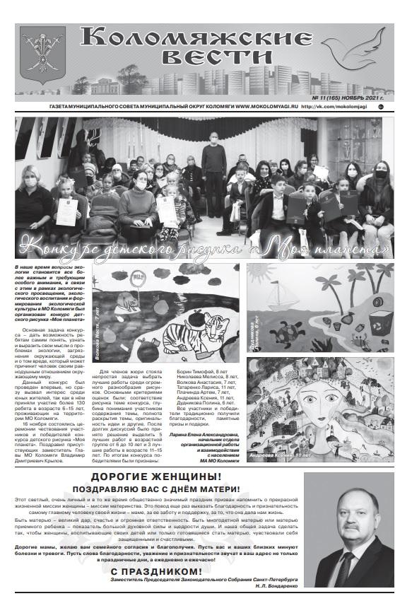 Свежий номер газеты "Коломяжские вести" - ноябрь, 2021