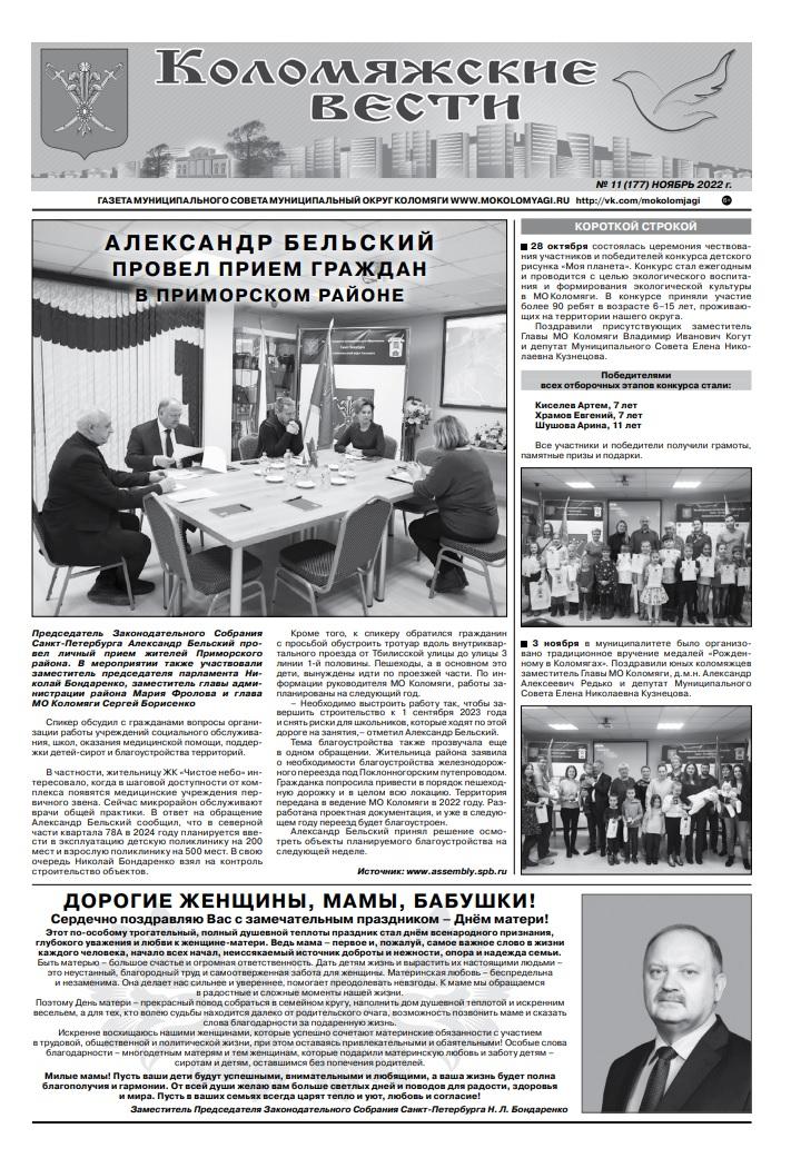 Свежий номер газеты "Коломяжские вести" - ноябрь, 2022