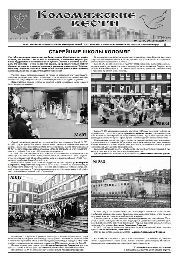 Свежий номер газеты "Коломяжские вести" - октябрь, 2021