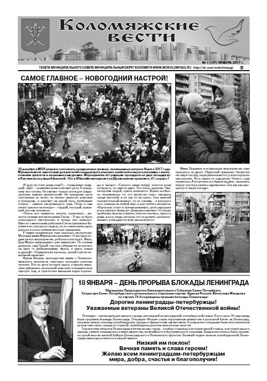 Уважаемые читатели, свежий номер газеты "Коломяжские вести" на нашем сайте - mokolomyagi.ru/files/file/Gazeta_01_17.pdf