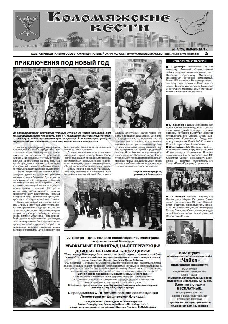 на сайте свежий номер газеты "Коломяжские вести" - mokolomyagi.ru/files/file/Kolomyagi_01_19_.pdf