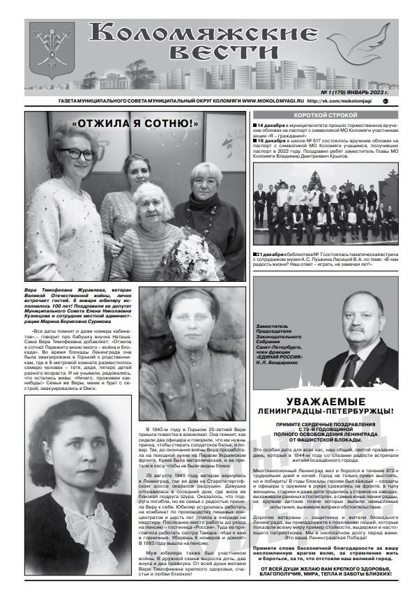 Свежий номер газеты "Коломяжские вести" - январь, 2023