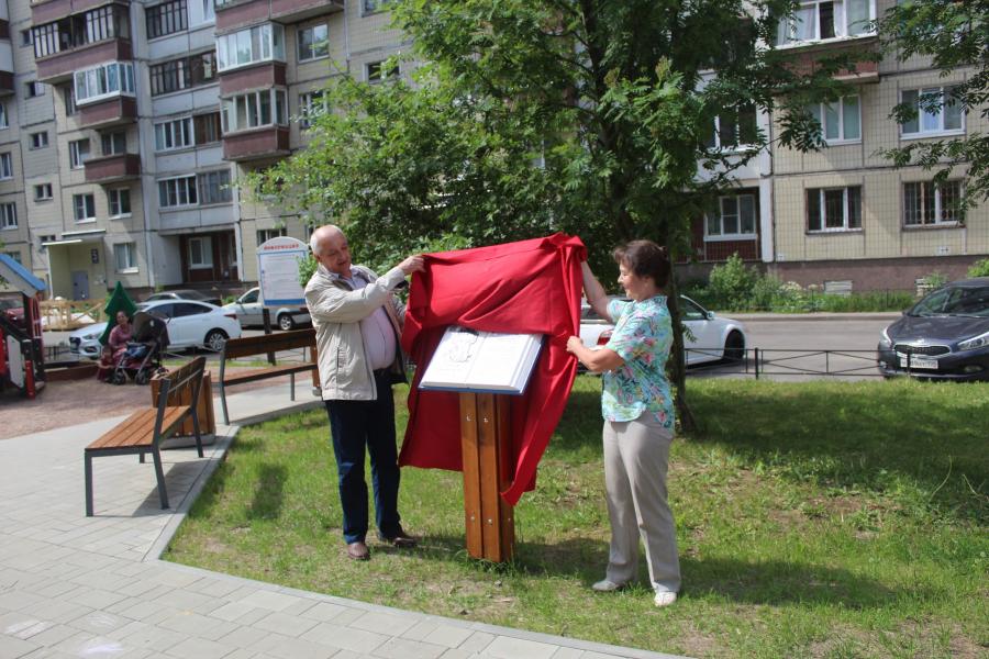 Торжественно открыли стелу Глава МО  Коломяги Сергей Эдуардович Борисенко и депутат Муниципального Совета  Елена Юрьевна Степанова.