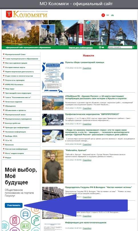 Опрос размещен в разделе Общественного голосования на портале Госуслуг и доступен на официальном сайте МО Коломяги, через виджет Общественного голосования (нажать кнопку «Участвовать»), или по ссылке: