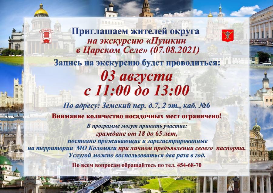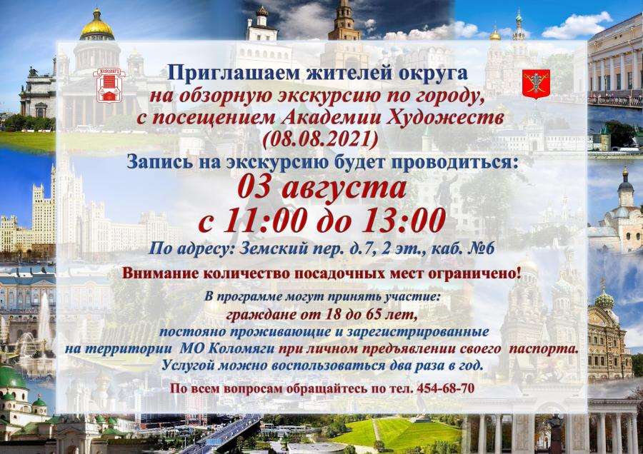 В связи с эпидемиологической обстановкой, запись на экскурсии для жителей МО Коломяги будет проводиться дистанционно