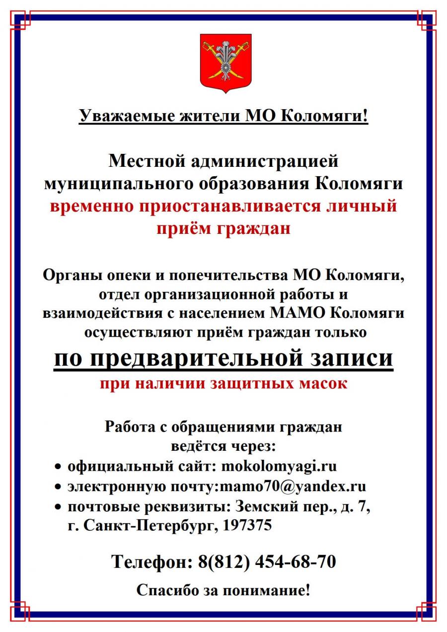 Структура и график приема жителей сотрудниками местной администрации МО Коломяги