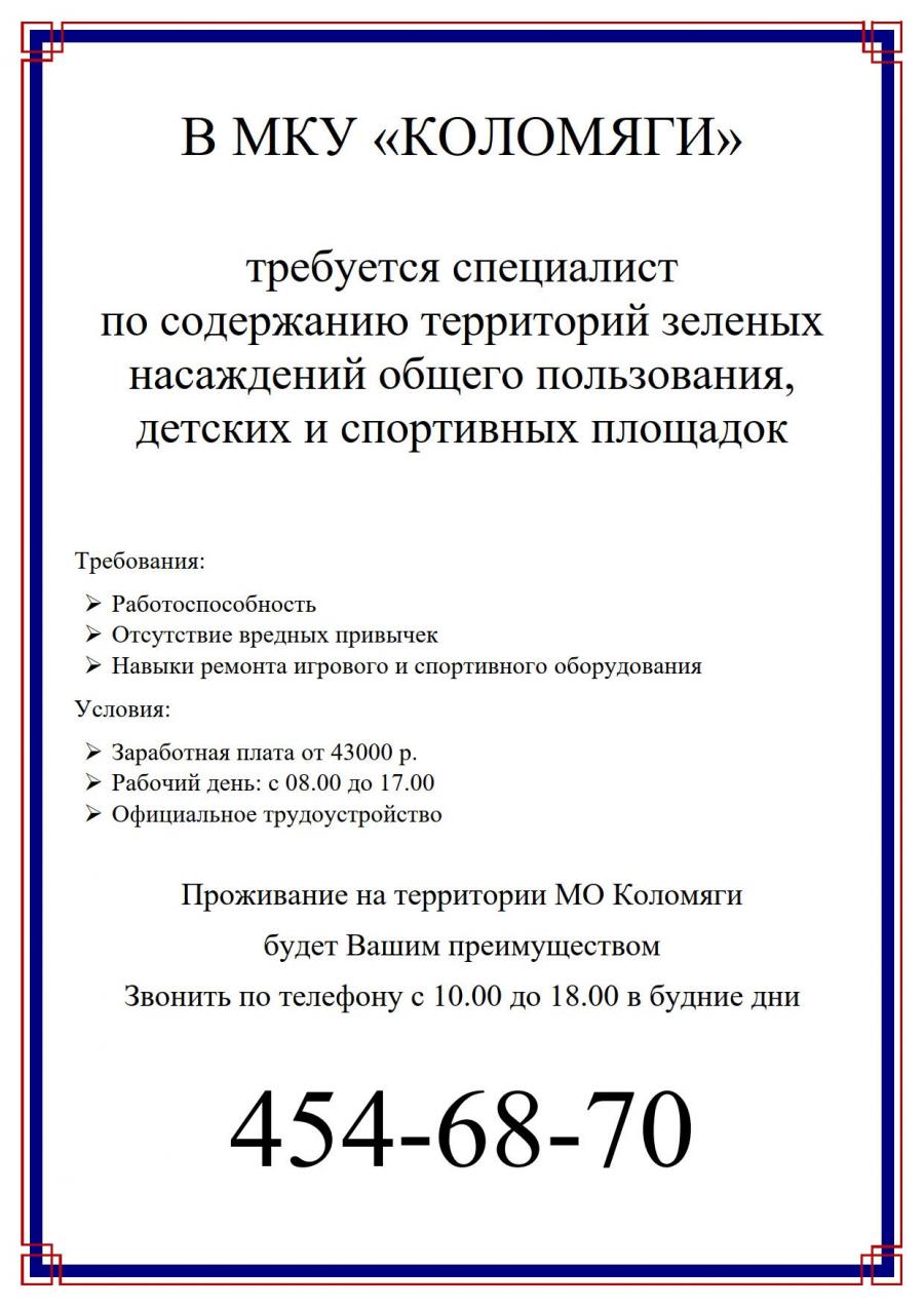 Вакансия в МКУ "Коломяги"