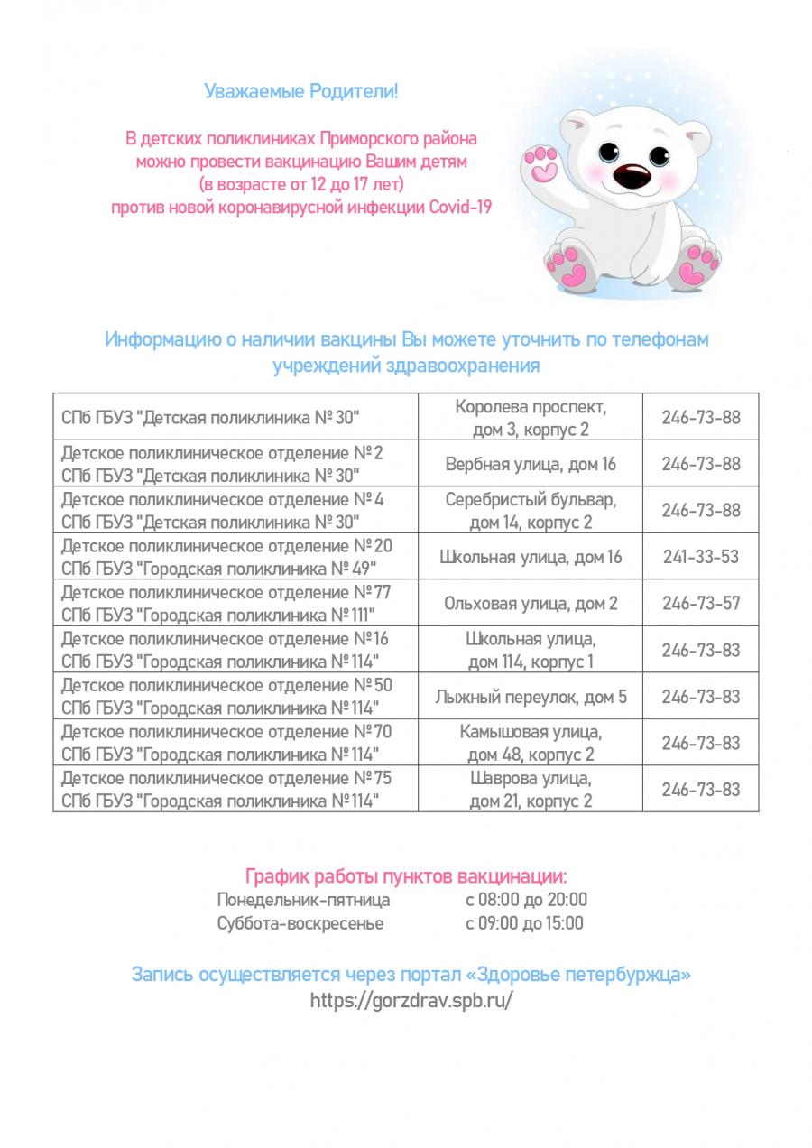 Информация от администрации Приморского района