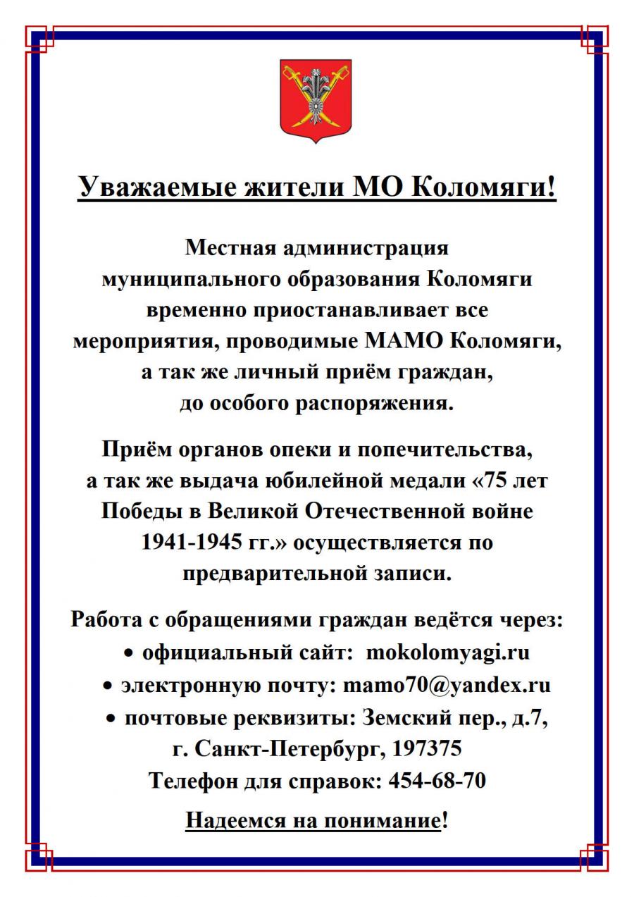 Структура и график приема жителей сотрудниками местной администрации МО Коломяги