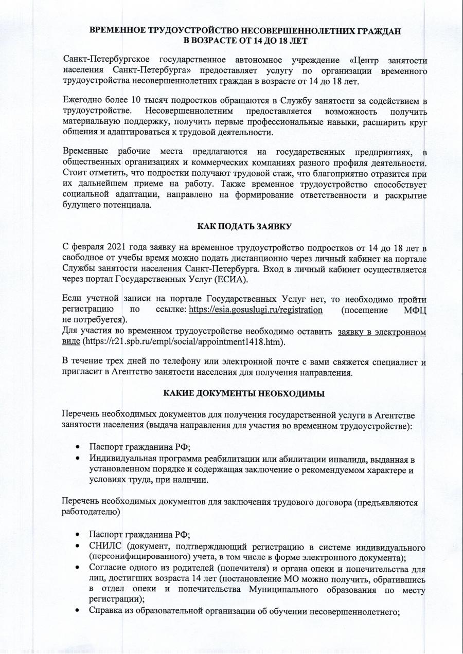 Временное трудоустройство несовершеннолетних граждан