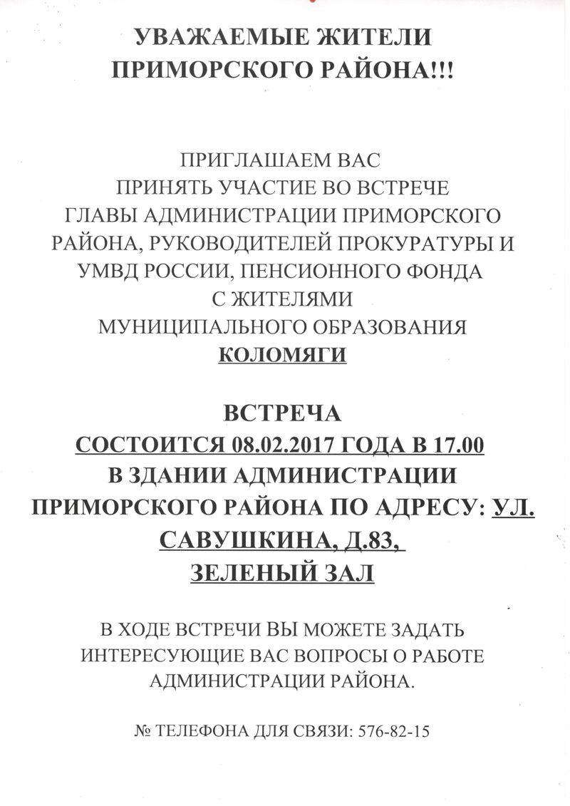 Встреча Главы Администрации Приморского района с жителями МО Коломяги