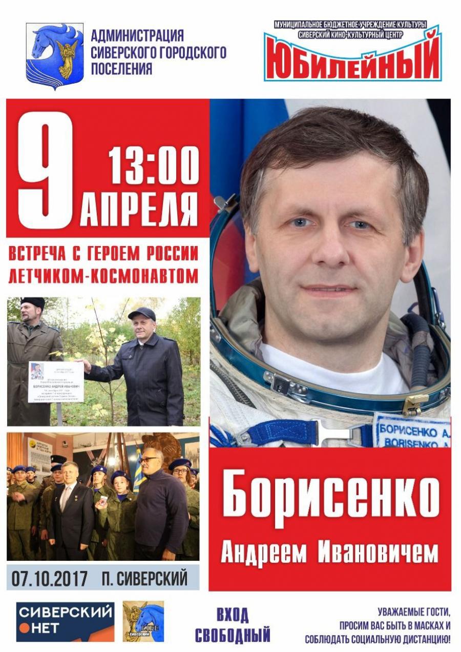 В преддверии Всемирного Дня авиации и космонавтики в Сиверском кино-культурном центре «Юбилейный» с символическим названием «Сиверская космическая» прошла встреча с известным российский лётчиком - космонавтом, Героем Российской Федерации Андреем Ивановичем Борисенко.