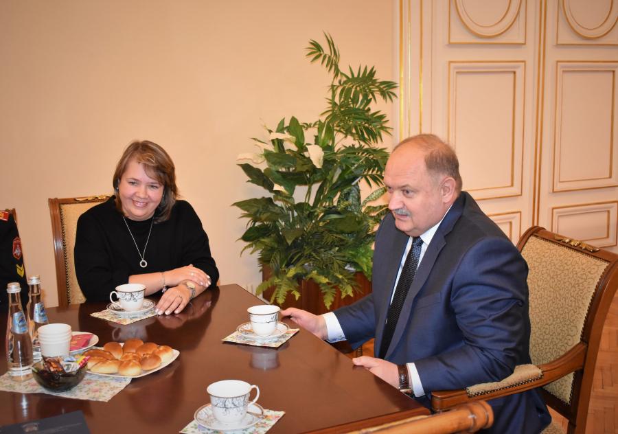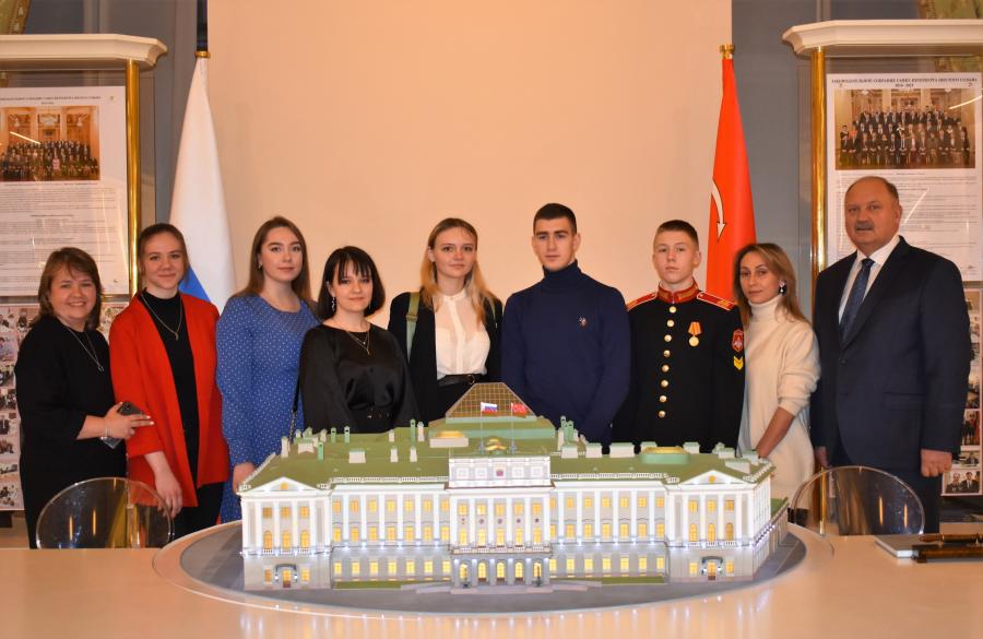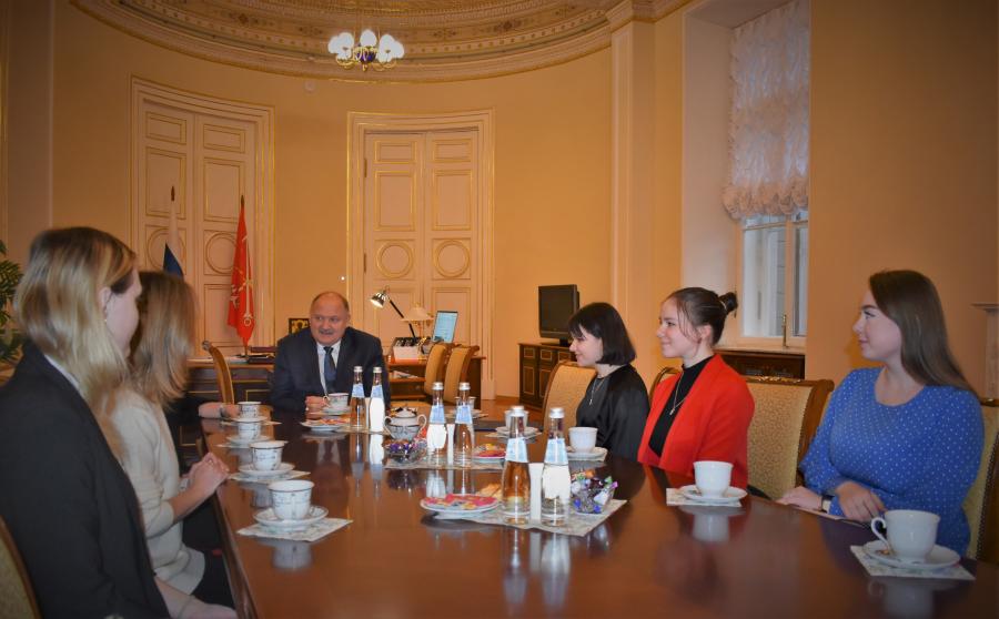 В заключение встречи пожелал ребятам успехов и проводил в Парламентский центр, где для них началась экскурсия по залам Мариинского дворца.